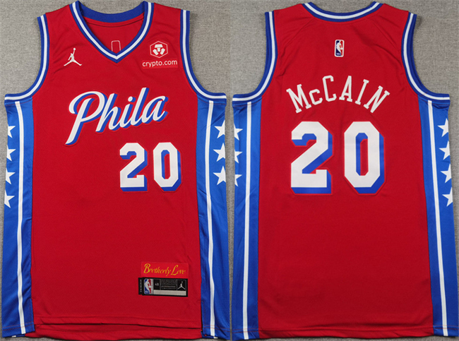 Men’s Philadelphia 76ers #20 Jared McCain Red Statement Edition Stitched Jersey