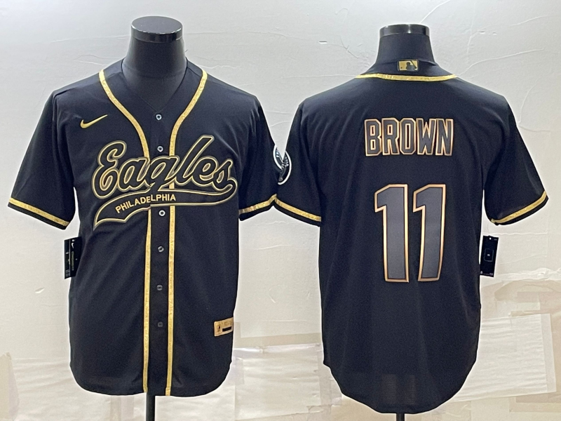 Men’s Philadelphia Eagles #11 A. J. Brown Black Gold With Patch Jersey