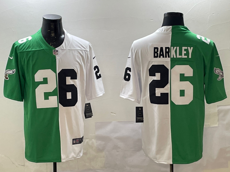 Men’s Philadelphia Eagles #26 Saquon Barkley Green/White Split Vapor Limited Jersey