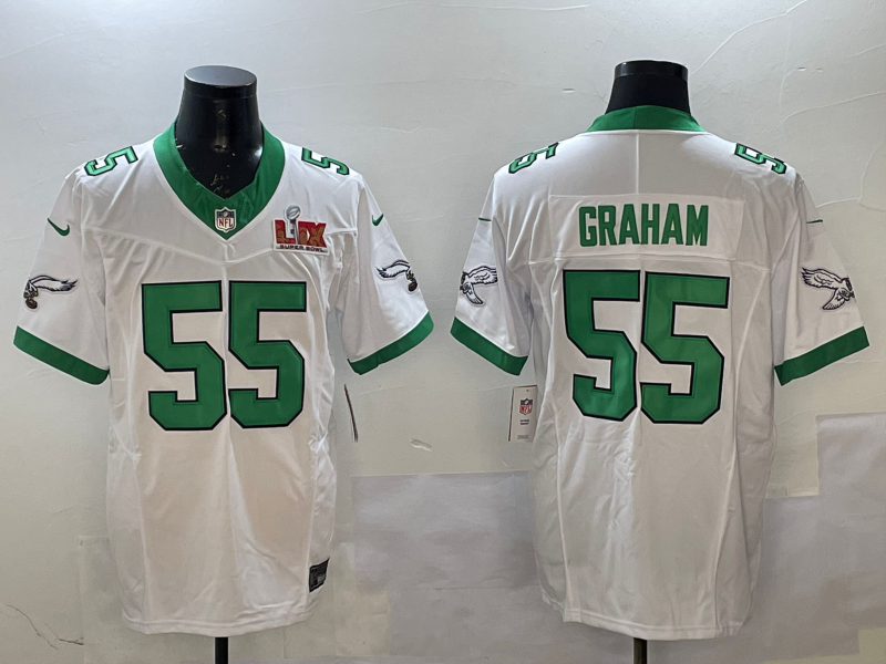 Men’s Philadelphia Eagles #55 Graham White 2025 Super Bowl LIX Patch Vapor Jersey