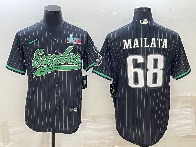 Men’s Philadelphia Eagles #68 Jordan Mailata Black With Super Bowl LVII Patch Limited Jersey