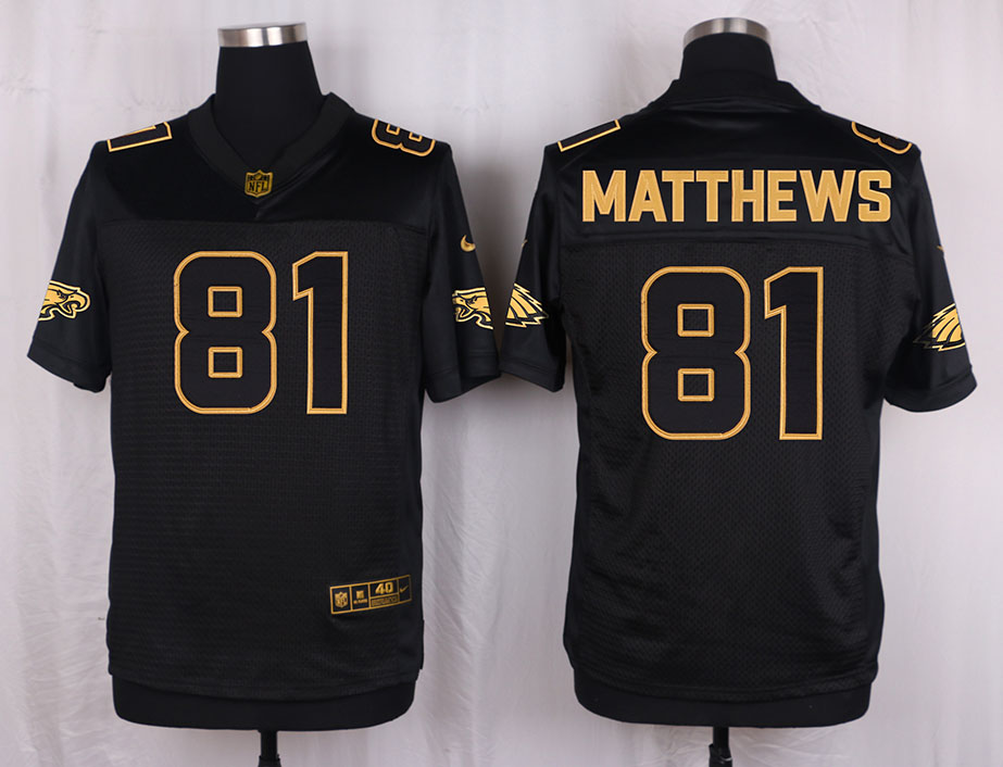 Mens Philadelphia Eagles #81 Matthews Pro Line Black Gold Collection Jersey