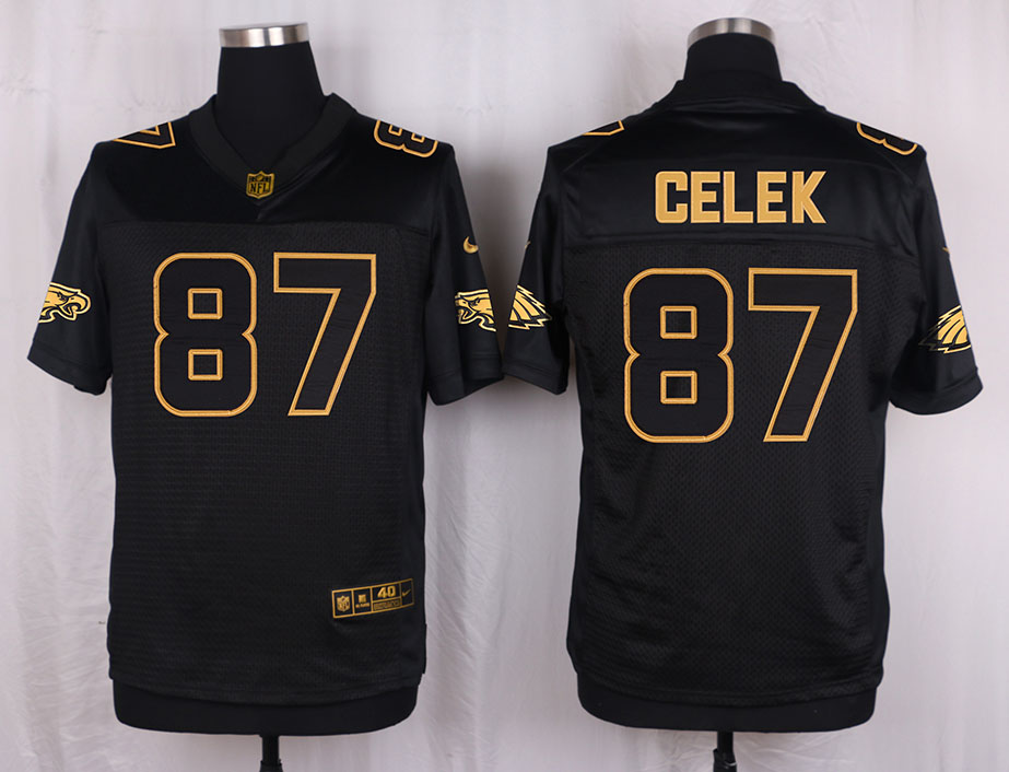 Mens Philadelphia Eagles #87 Celek Pro Line Black Gold Collection Jersey