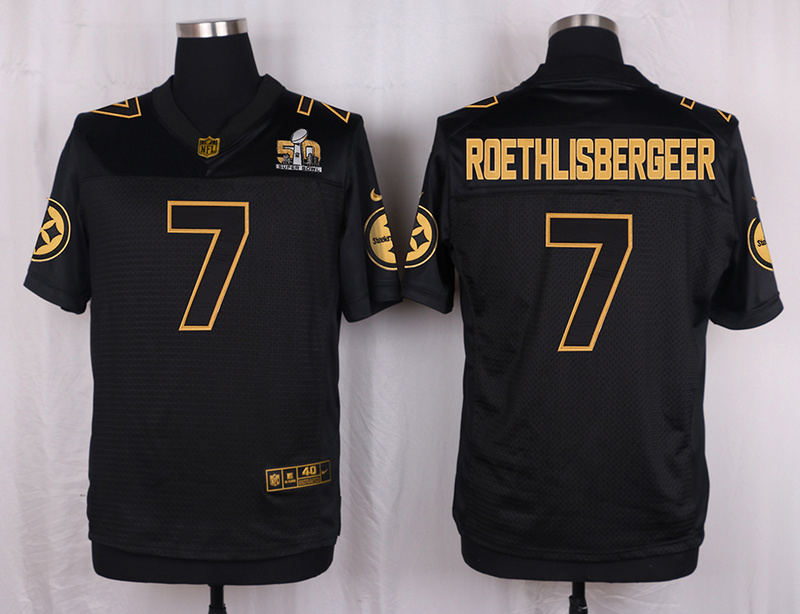 Mens Pittsburgh Steelers #7 Roethlisbergeer Pro Line Black Gold Collection Jersey