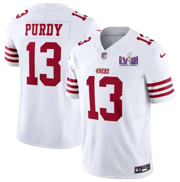 Men’s San Francisco 49ers #13 Brock Purdy White 2024 F.U.S.E. Super Bowl LVIII Patch Vapor Jersey