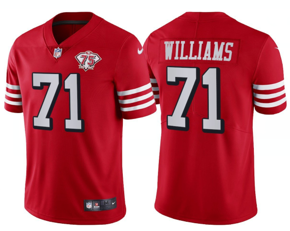 Men’s San Francisco 49ers #71 Trent Williams Red 2021 75th Anniversary Vapor Limited Jersey