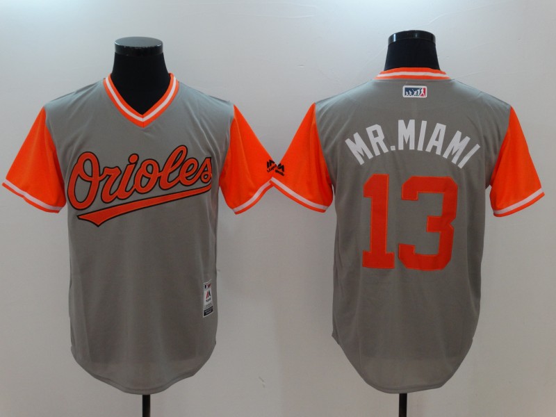 MLB Baltimore Orioles #13 MR.Miami All Rise Grey Pullover Jersey