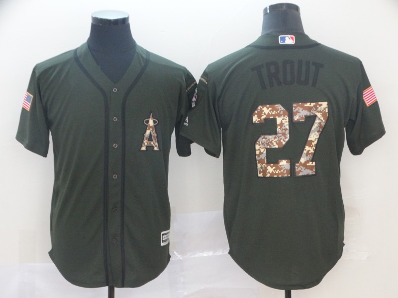 MLB Los Angeles Angels #27 Trout Green Salute To Serive Game Jersey