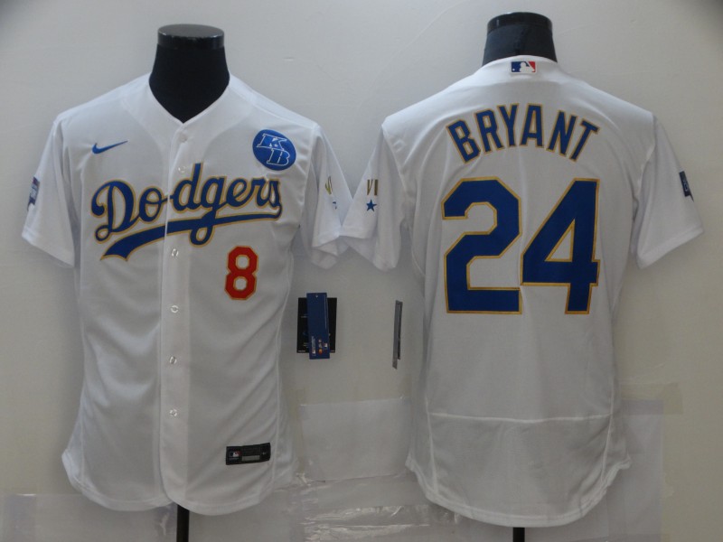 MLB Los Angeles Dodgers #8 & #24 Kobe Bryant With KB Patch White Gold Championship Flex Base Elite Jersey