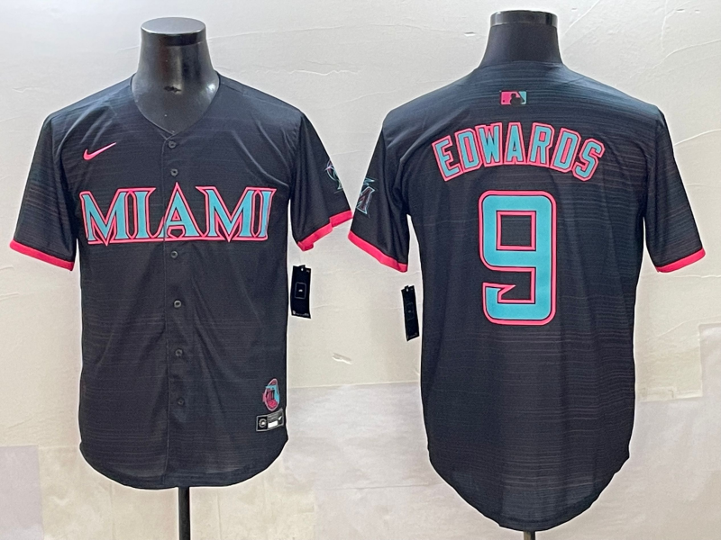 MLB Miami Marlins #9 Edwards Black Game Nike Jersey