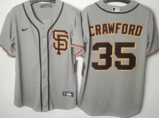 MLB San Francisco Giants #35 Brandon Crawford Grey Game Jersey