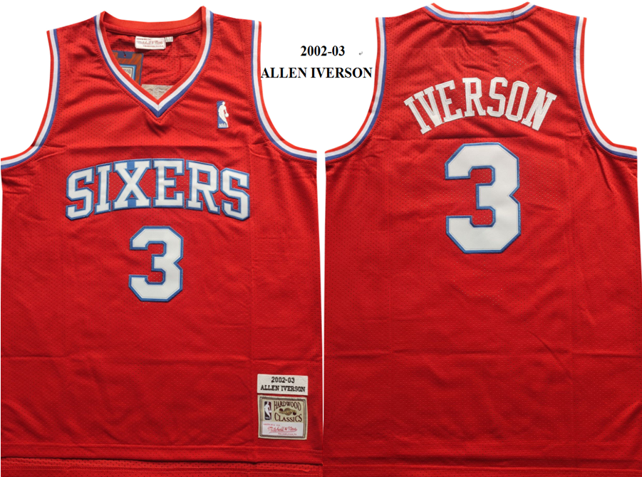 NBA 76ers 3 Allen Iverson Red Hardwood Classics Men Jersey