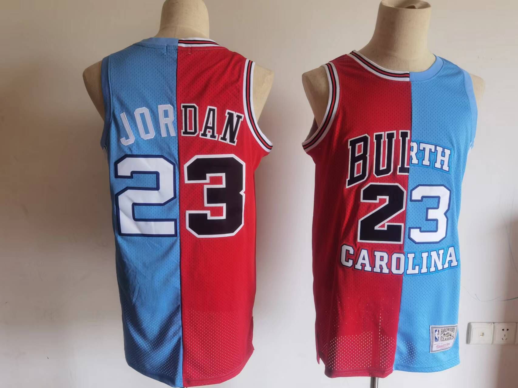 NBA Chicago Bulls/North Carolina #23 Michael Jordan Red/Blue Splite Jersey