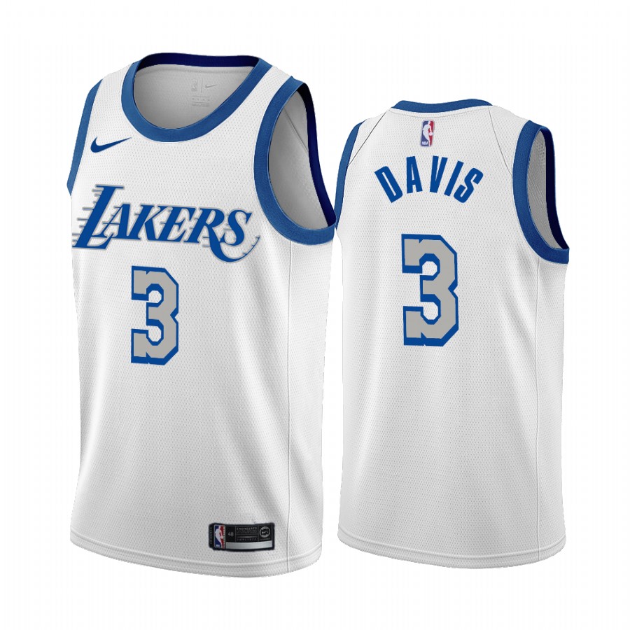 NBA Los Angeles Lakers #3 Anthony Davis White City Edition 2020-21 New Blue Silver Logo Jersey