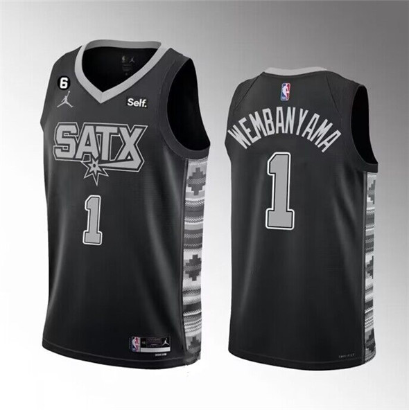NBA Men’s San Antonio Spurs #1 Victor Wembanyama Black 2022/23 Statement Edition With Jersey