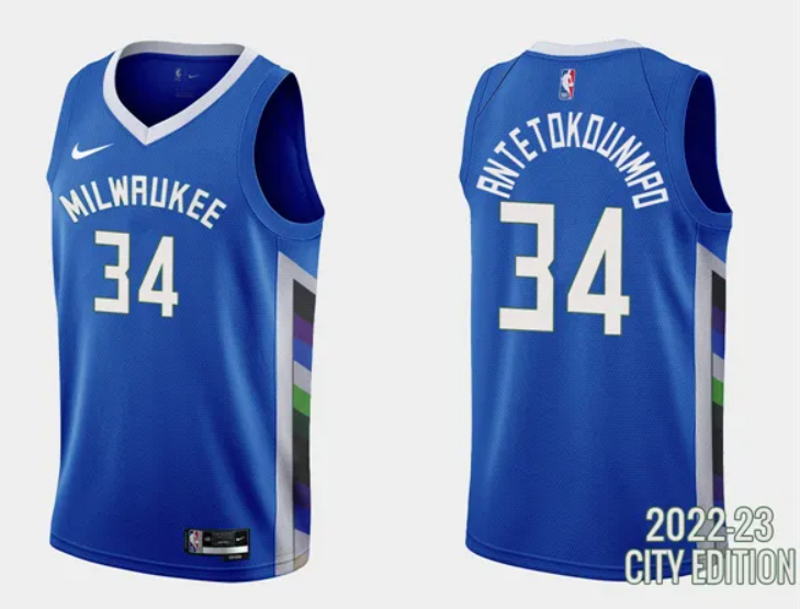 NBA Milwaukee Bucks #34 Giannis Antetokounmpo 2022-23 City Edition Blue Jersey