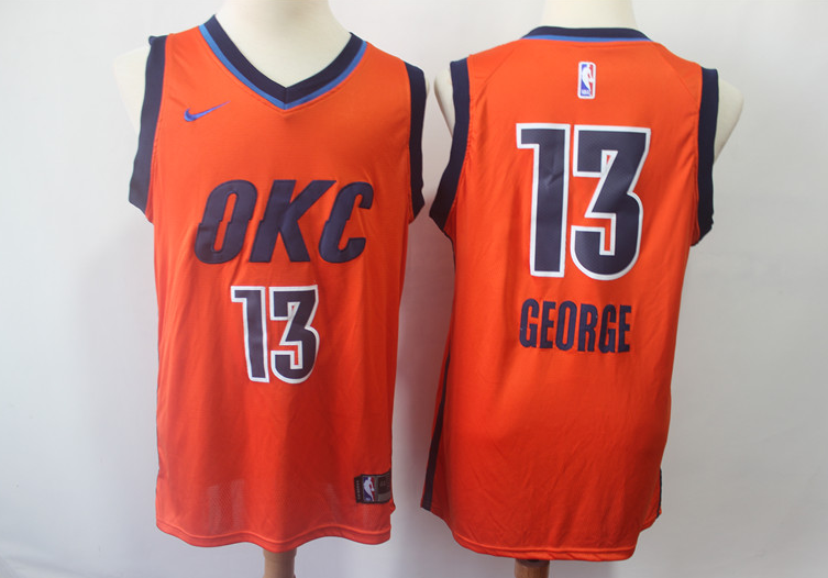 NBA Thunder 13 Paul George Orange Earned Edition Nike Men Jersey
