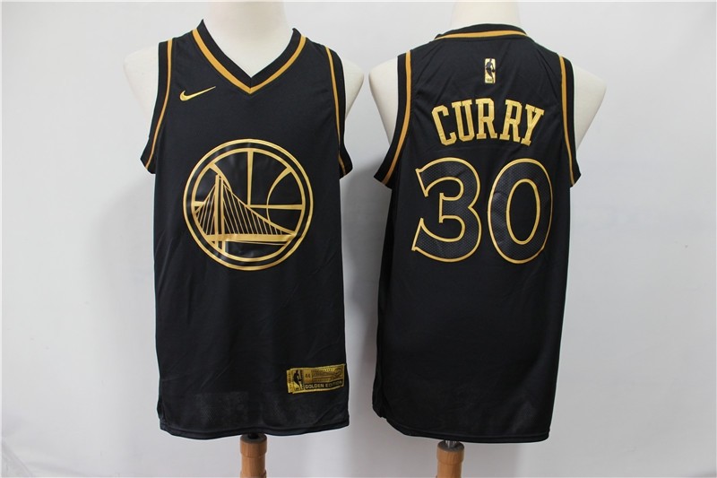 NBA Warriors 30 Stephen Curry Black Gold Nike Men Jersey