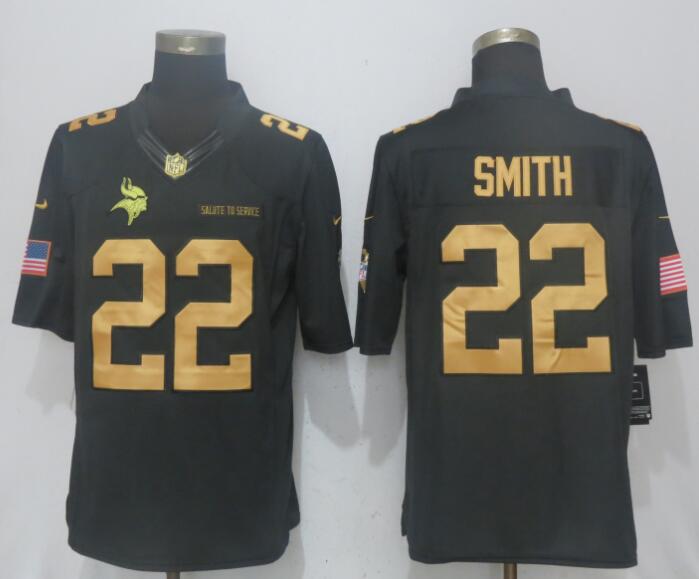 New NFL Minnesota Vikings #22 Smith Gold Anthracite Salute To Service Limited Jersey