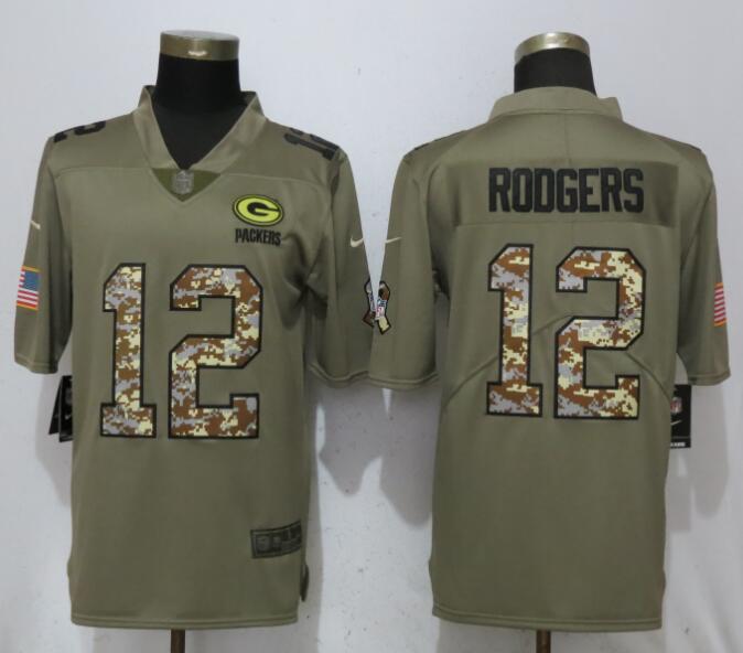 New Nike Green Bay Packers Packers 12 Rodgers Olive/Camo Carson 2018 Salute to Service Limited Jersey