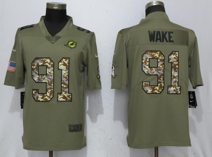 New Nike Miami Dolphins 91 Wake Olive/Camo Carson 2018 Salute to Service Limited Jersey