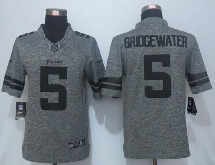 New Nike Minnesota Vikings 5 Bridgewater Gray Mens Stitched Gridiron Gray Limited Jersey