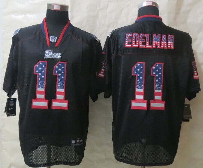 New Nike New England Patriots Patriots 11 Edelman USA Flag Fashion Black Elite Jerseys