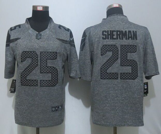 New Nike Seattle Seahawks #25 Sherman Gray Mens Stitched Gridiron Gray Limited Jersey
