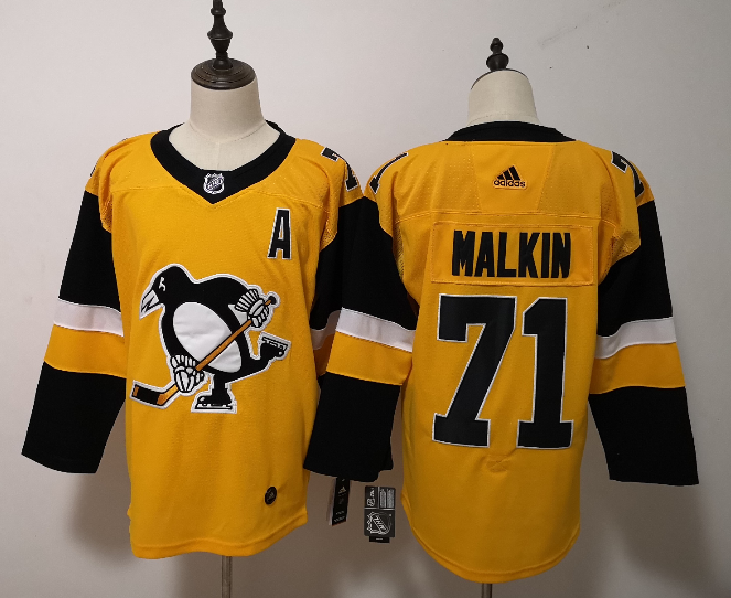NHL Penguins 71 Evgeni Malkin Yellow Alternate Adidas Men Jersey
